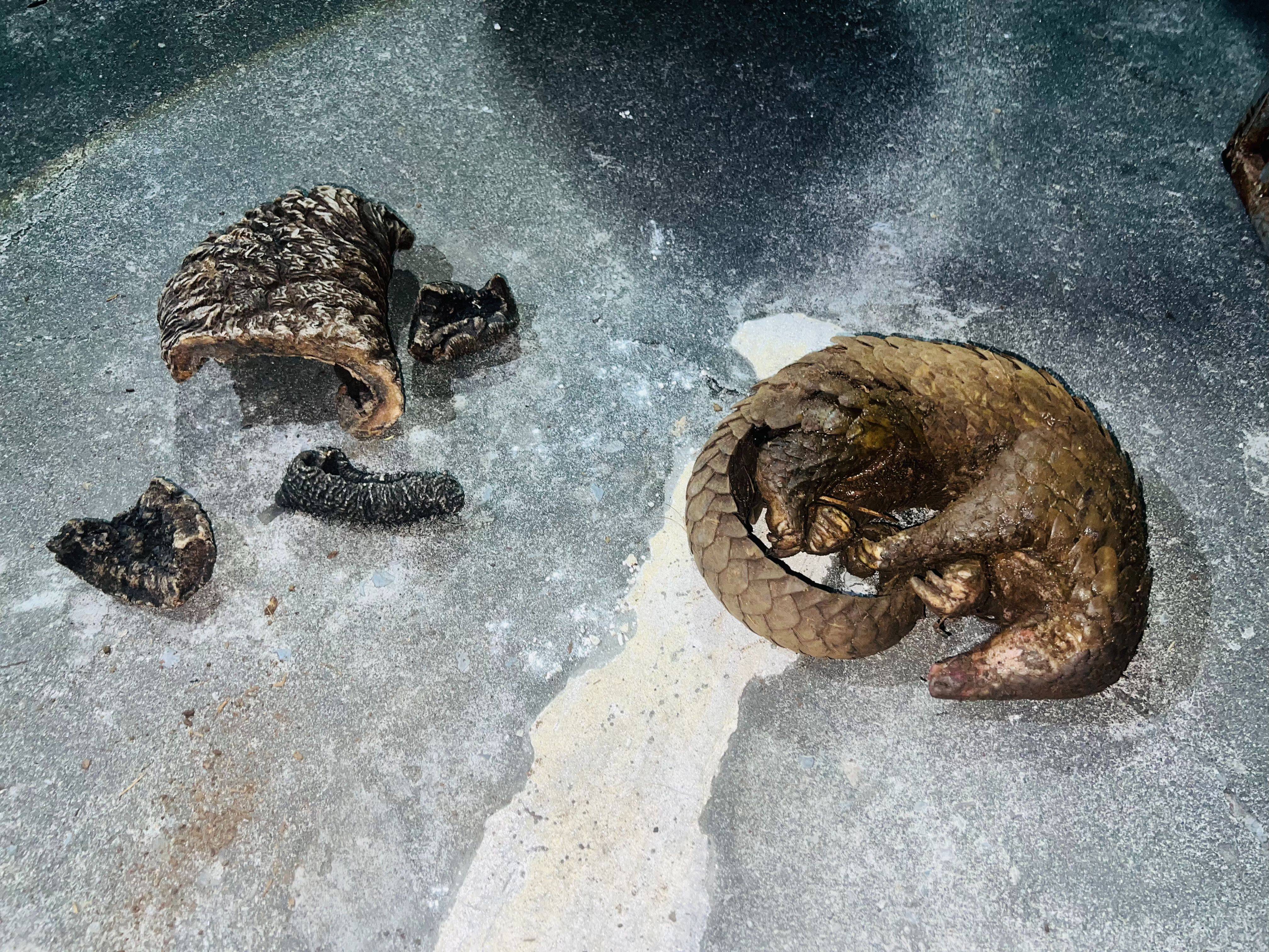 经查,夫君背包里(li)藏有活体穿山(shan)甲1只,死体穿山(shan)甲1只,大象皮4块。
