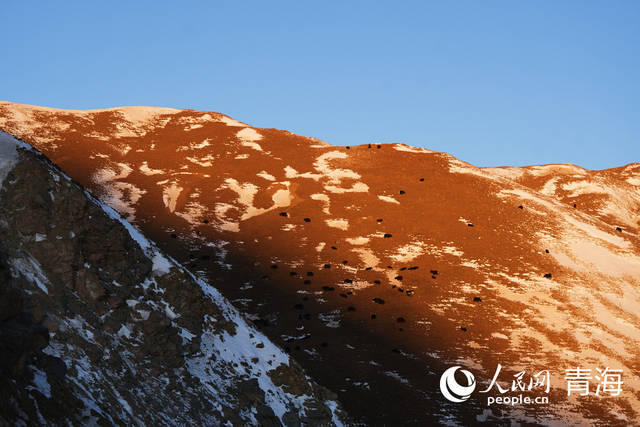 暖阳升起,山坡上的牦牛正觅食。人民网记者 杨启(qi)红(hong)摄