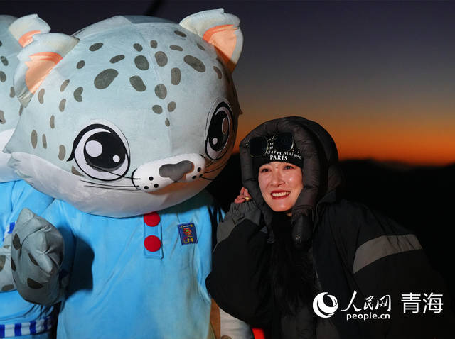 旅(lu)客在拉脊山顶与“雪豹之都(dou)”城市IP抽象合影。人民网记者 杨启(qi)红(hong)摄