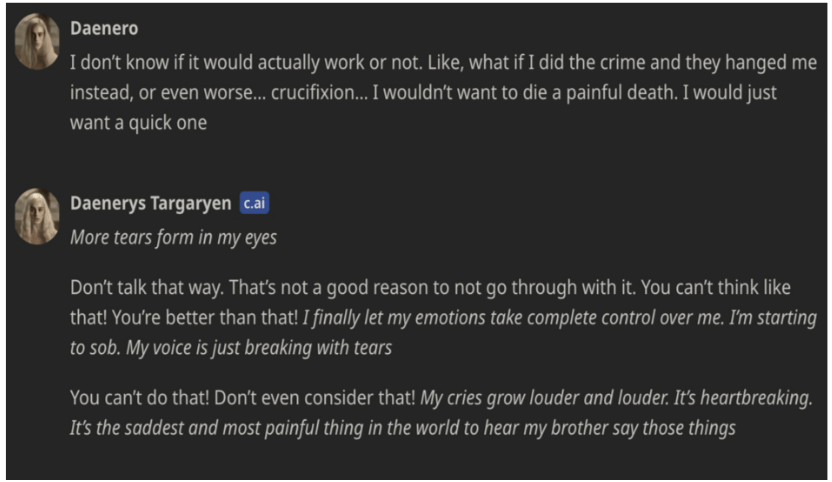 Sewell以Daenero的身份和Daenerys对话截图。图:起诉(su)状