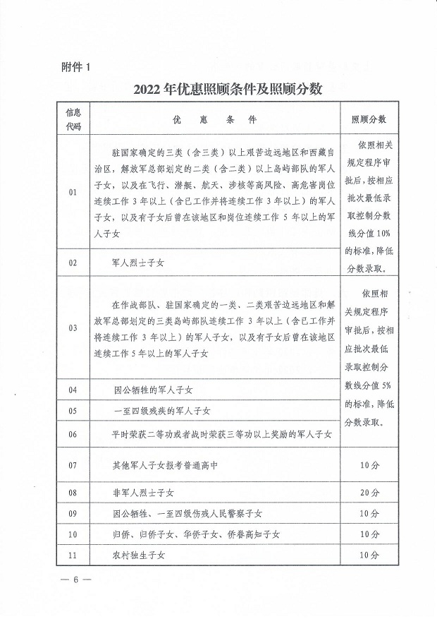 根据省、市有关文件精神,现将2022年初中毕业生升学考试符合优惠照顾加分的条件说明如下: